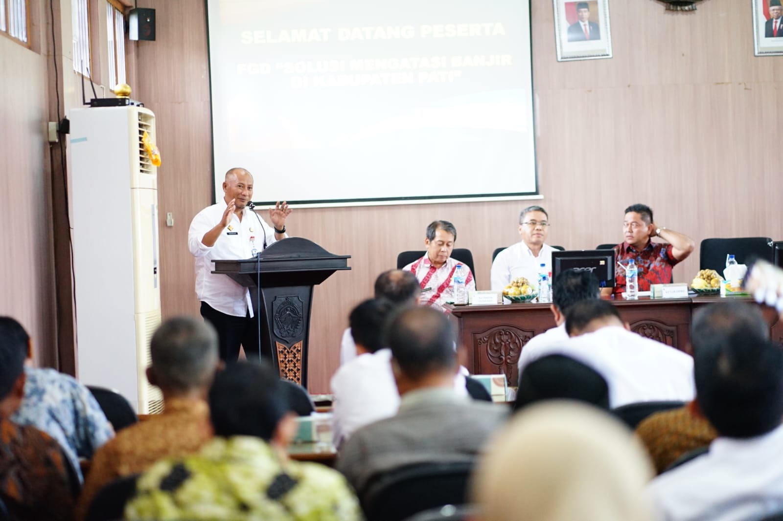 RILISJATENG.COM- Pj Bupati Pati Henggar Budi Anggoro, Rabu (15/3), menghadiri dan membuka Focus Group Discussion (FGD) bertema solusi mengatasi banjir di Kabupaten Pati, yang diadakan oleh Badan Perencanaan Pembangunan Daerah (Bappeda), di Ruang Penjawi Setda Kabupaten Pati.