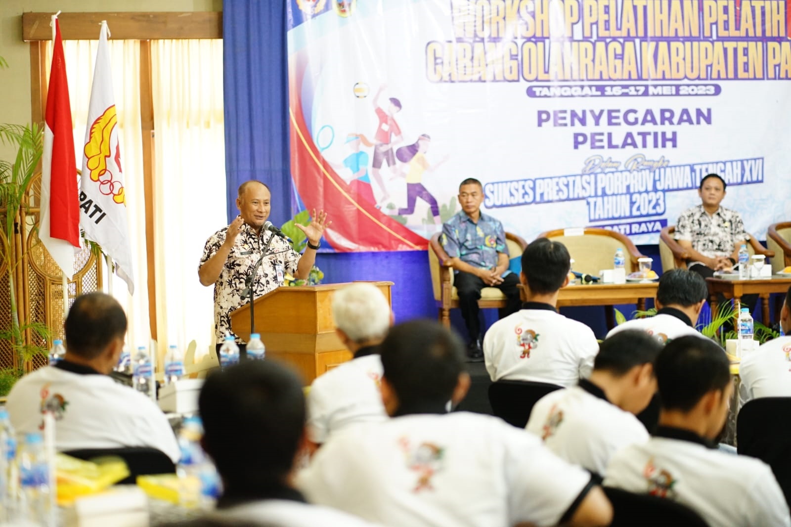 RILISJATENG.COM- Pj Bupati Pati Henggar Budi Anggoro, Selasa (16/5) membuka acara workshop pelatih cabang olahraga Kabupaten Pati di Hotel Gitary Pati.
