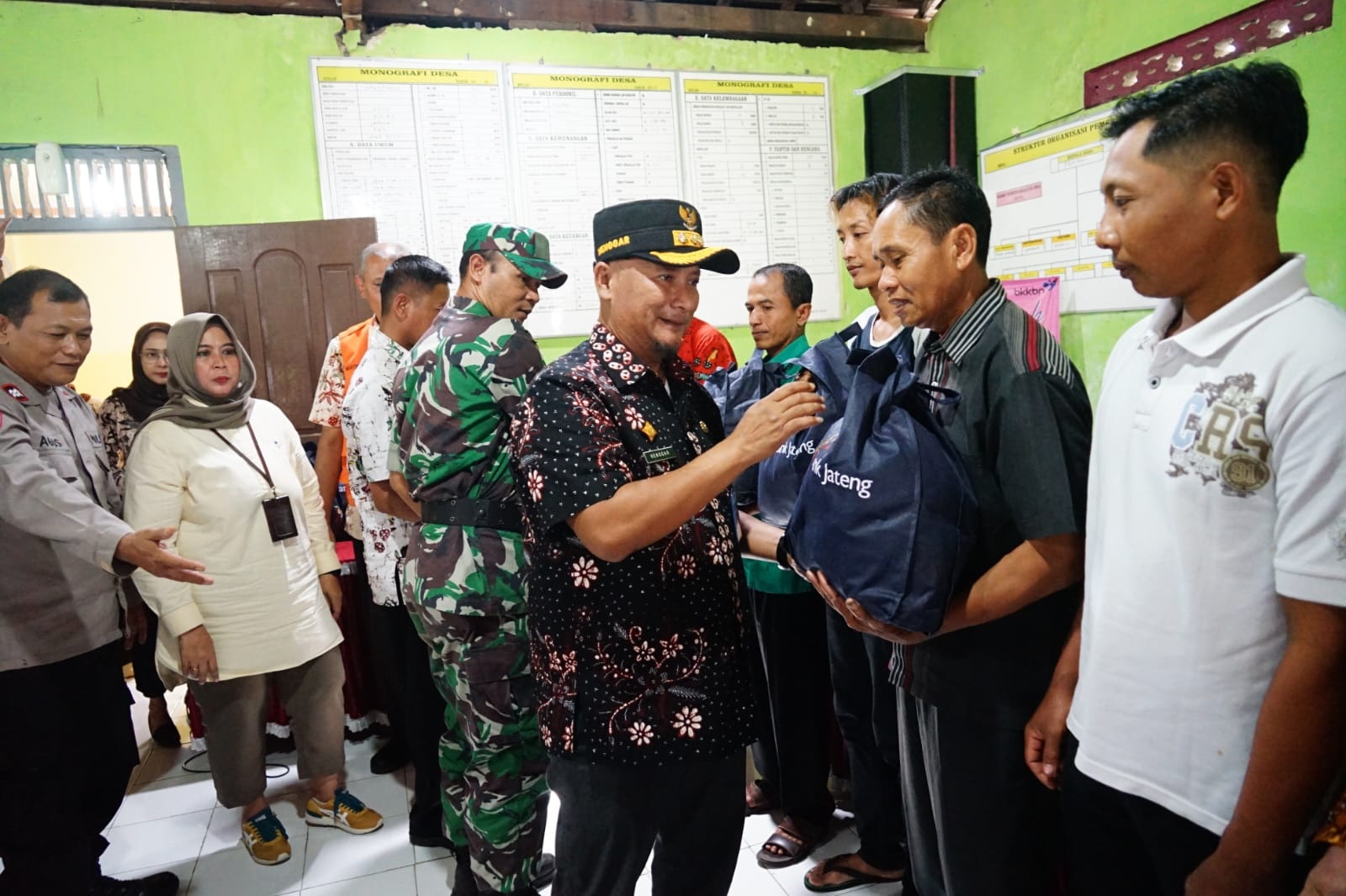 Bantuan ini diserahkan langsung oleh Pj Bupati di Desa Ngastorejo Kecamatan, Selasa (4/4). Henggar didampingi oleh Kepala Bank Jateng Cabang Pati, Kepala BPBD, Camat Jakenan, Kepala Desa Ngastorejo dan perwakilan penerima paket bantuan pasca banjir.